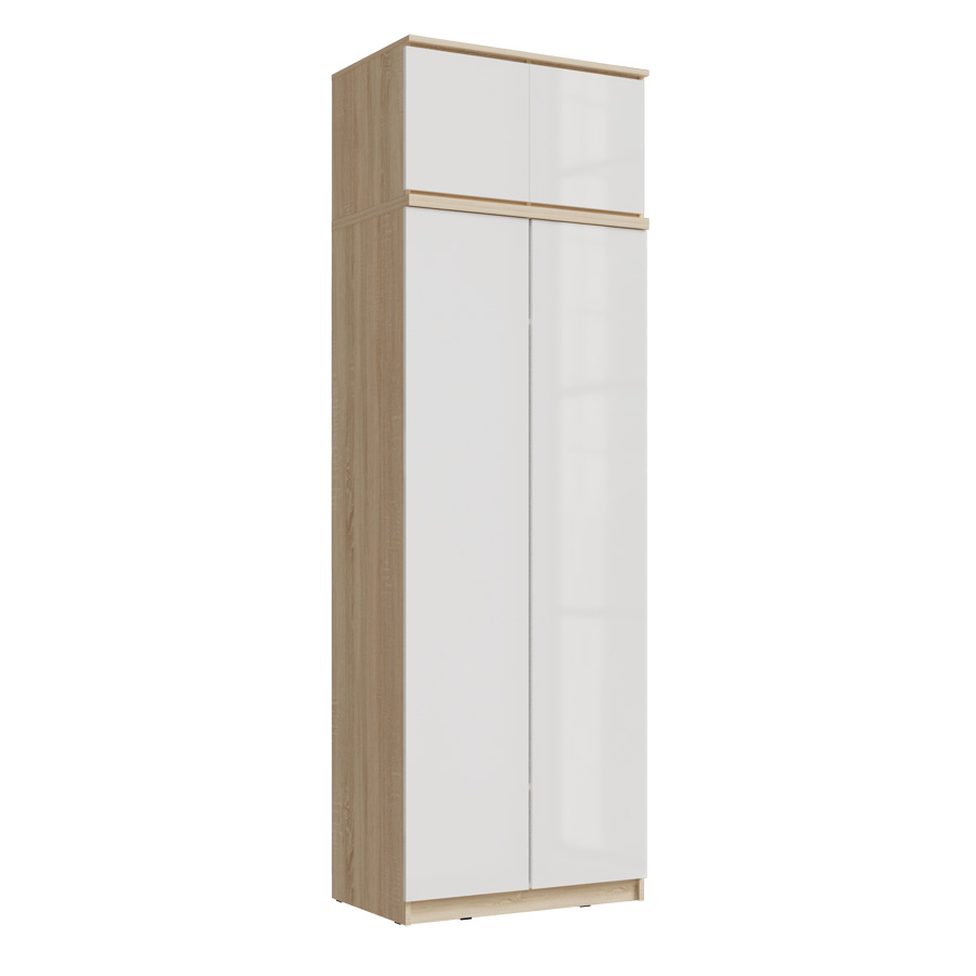 корпус - дуб сонома; фасады - белый глянцевый.